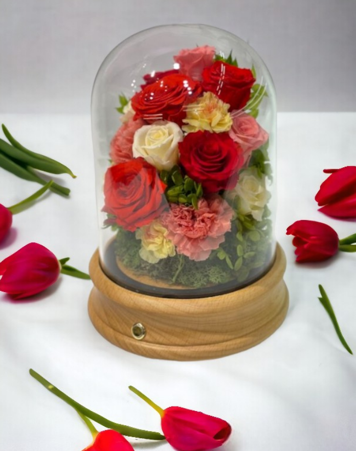 The Everlasting Flower Bluetooth Speaker is made of beech, walnut, resin, and wheat straw fiber materials, combined with a transparent glass cover. The appearance is round, full, simple and smooth, full of beauty, and available in a variety of colors. It is also integrated into the audio design, and you can play the music on the device by connecting it to a device with Bluetooth.