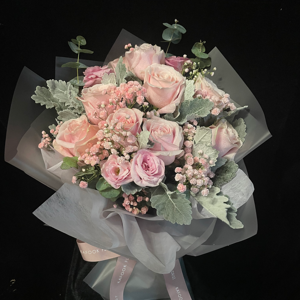 Pink Roses, Lisianthus, Baby Breathe and Seasonal Flower